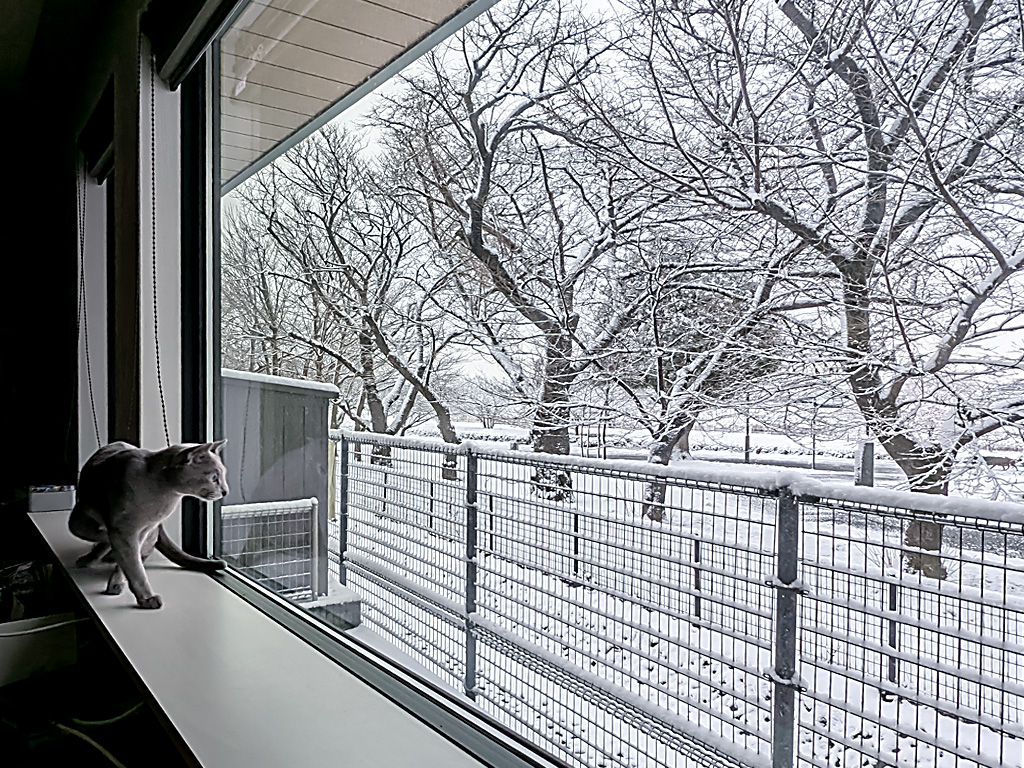 見慣れぬ雪景色にも興味津々…